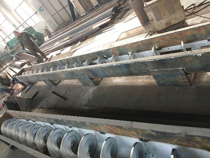 无轴螺旋输送机的螺旋叶片有实体螺旋面、带式螺旋面和叶片螺旋面三种形式,其中,叶片式螺旋面应用相对较少,主要用于输送粘度较大和可压缩性物料,这种螺悬面型,在完成输送作业过程中,同时具有并完成对物料的搅拌、混合等功能。